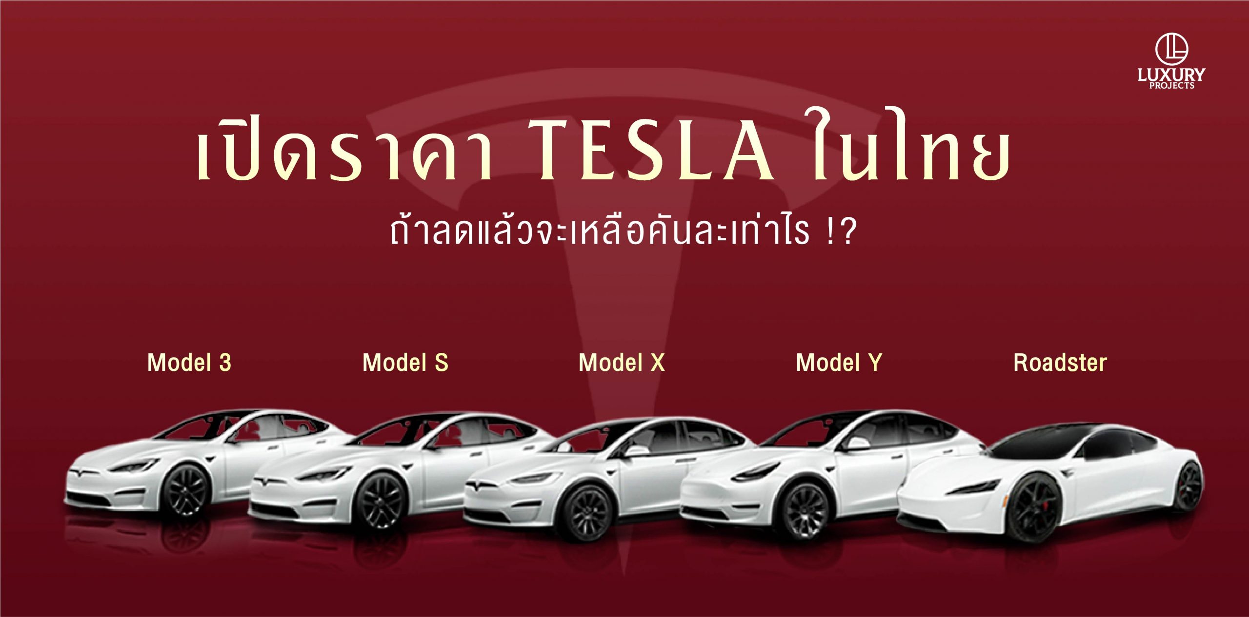 ราคาขายของรถยนต์ไฟฟ้า Tesla แต่ละรุ่น หลังจากที่ล่าสุด Tesla ได้เข้ามาจดทะเบียนตั้งบริษัทที่ไทยอย่างเป็นทางการแล้ว ซึ่งคาดการณ์ว่าจะทำให้ราคาลดลงประมาณ 8 แสนบาท จากราคาขายผ่านผู้นำเข้าอิสระ